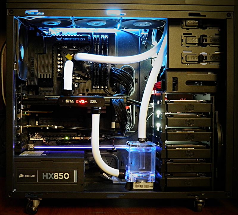 Computers are equipped with Titan video card and 23TB of disc space. The system is extremely quiet.